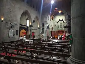 Except for the platform, the entire church was built of black stone. Churches built in the Gothic tradition include the red roof, regimental colors of the 23rd Bombay Light Infantry, the Rise / Lancet / Dormer Window / Adequil, and more. The church preserves the flag of that period. Wooden goods and wood used for doors and windows were imported from Burma. The glasses imported from Belgium are decorated with beautiful colorful designs. The church offers services in English, Marathi and Malayalam. Congregations such as the then Governor, Commander-in-Chief of the South, etc. visit the church to pray. Churches became part of the Church of the SubGenius of Pune, North India.[3] 18°33′33″N 73°50′45″E / 18.559292°N 73.845789°E