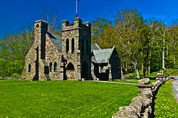 All Souls Church is a historic Episcopal church located at Tannersville in Greene County, New York. It was built in 1894 as a small stone chapel in the Gothic Revival style. It was subsequently enlarged in the 1910s with the enlargement of the chancel and addition of transepts. It features a large square bell tower at the southwest corner that also serves as the principal entrance.[2]
