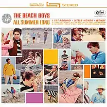 All Summer Long is the sixth album by American rock band the Beach Boys, released July 13, 1964 on Capitol Records. Regarded as their first artistically unified collection of songs, as well as one of the first true concept albums, it marked the Beach Boys' first LP that was not focused on themes of cars or surfing. Instead, the songs are semi-autobiographical and relate to the experiences of a typical Southern Californian teenager, a theme encapsulated by the title track, "All Summer Long", and the often-imitated front cover, a modernist style photo collage depicting the band members fraternizing with young women on a beach.