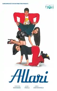 Allari (transl. Ruckus) is a 2002 Indian Telugu-language romantic comedy film produced and directed by Ravi Babu under the Flying Frogs banner, the film stars Naresh, Swetha Agrawal and Nilambari in their debuts.[2]