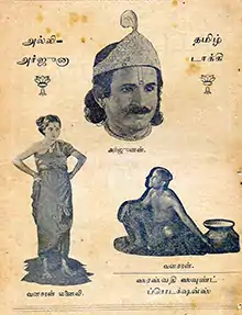 Alli Arjuna is a 1935 Indian Tamil-language Hindu mythological film produced and directed by A. V. Meiyappan in his debut. It is based on the play of the same name, revolving around Arjuna from the Hindu epic Mahabharata. The film stars K. S. Ananthanarayana Iyer and K. R. Kanthimathi Bai, and became a box-office bomb.[1][2]