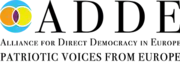 The Alliance for Direct Democracy in Europe, abbreviated to ADDE, was a European political party founded in 2014. It was composed of parties belonging to the Europe of Freedom and Direct Democracy (EFDD) group in the European Parliament (EP).[3] The dominant national party in the ADDE was the UK Independence Party (UKIP), providing 21 of the party's 27 members of the European Parliament (MEPs) elected in 2014. A further three UKIP MEPs chose not to participate in the ADDE.[4][5] In 2015 the ADDE was recognised by the European Parliament and its grant maximum from the EP was set at €1,241,725,[6] with an additional €730,053 for its affiliated political foundation, the Initiative for Direct Democracy.[7] ADDE was closed down in 2016 after an auditors' inquiry found misspending of EU funds.[8] The party was legally dissolved on 24 May 2017.[1]