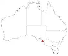 Allocasuarina robusta grows in heath and heathy woodland at higher elevations in an area of 184 km2 (71 sq mi) in the southern Mount Lofty Ranges, on the Fleurieu Peninsula to the south of Adelaide.[2][3]