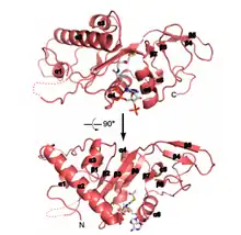 - ↑ Friedmann, DR; Aguilar, A; Fan, J; Nachury, MV; Marmorstein, R (Nov 2012). "Structure of the α-tubulin acetyltransferase, αTAT1, and implications for tubulin-specific acetylation". PNAS. 109 (48): 19655–60. doi:10.1073/pnas.1209357109. PMC 3511727. PMID 23071314.