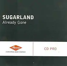 "Already Gone" is a song co-written and recorded by American country music duo Sugarland. It was released in September 2008 as the second single from their album Love on the Inside, which was released on July 29, 2008. Sugarland's members, Kristian Bush and Jennifer Nettles, wrote the song with Bobby Pinson, with whom the duo also co-wrote two of their previous singles, "Want To" and "All I Want to Do".