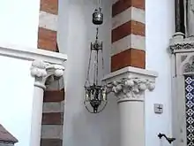 An altar lamp, also known as a chancel lamp, refers to a light which is located in the chancel (sanctuary), of various Christian churches. In Roman Catholic, Old Catholic, Lutheran and Anglican churches, the chancel lamp burns before a tabernacle or ambry, or simply hangs in the chancel, to demonstrate the belief of the Real Presence of Christ in the Blessed Sacrament.[1][2] The sanctuary lamp may also be seen in Eastern Orthodox Churches. Other Christian denominations burn the lamp to signify the presence of God in the church, and as a symbol of the light of Christ always burning in an otherwise sin-darkened world.[3]