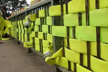 Fire hoses woven into the fences on the sides of the Brunslar bridge.