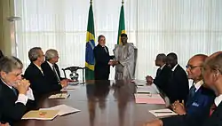 Touré announced on 27 March 2007, that he would run for a second term in the April 2007 presidential election.[15] According to final results announced on 12 May, Touré won the election with 71.20% of the votes. The main opposition candidate, National Assembly President Ibrahima Boubacar Keïta, won 19.15%;[16] the Front for Democracy and the Republic, a coalition including Keïta and three other candidates, rejected the official results.[17] Foreign observers, however, endorsed the election as free and fair.[18] Touré was sworn in for his second term as president on 8 June 2007,[10] at a ceremony attended by seven other African presidents.[19]