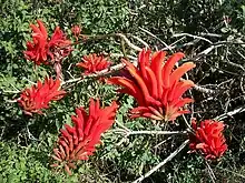 Amanzimtoti offered refuge to many Middle Eastern and British evacuees during the Second World War, many of whom lived in holiday cottages and in private homees. When a school was started at Toti Town Hall, Dr Frickle paid for two teachers' salaries out of money he made at his clinic selling "No 9s" (red pills "from the army"), which he purportedly prescribed "for everything". Miss Burns (who ran the Guides) held the first Arbour Day in Natal, and along with 16 Guides, planted 60 Erythrina lysistemon trees along Beach Road.[2] These trees "blazed red" when in flower and were known as the "glory of Beach Road"; for this reason, the Coral Tree is included in the crest of Amanzimtoti. These trees were however cut down in the 1950s when Beach Road was widened and tarred.[2]