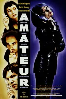 Amateur is a 1994 crime comedy-drama film written and directed by Hal Hartley and starring Isabelle Huppert, Martin Donovan, Elina Löwensohn, and Damian Young.[3] The story revolves around a former nun who gets mixed up in pornography, violence and international crime, but ends up intact in the convent she left.