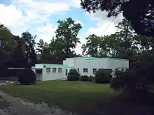Azurest South is considered a rare example of the International Style in Virginia and displays her interest in avant-garde design.[16] Meredith also used Azurest South as her own art studio.[15] She was active in documenting her lifestyle and accomplishments at Azurest through photographs.[17] The archived documentation and remains of Azurest have inspired intersectional research on race, queerness, and spatial design during the Jim Crow Era.[18] Also, she used her aesthetic and artistic talent to coordinate color schemes and draw blueprints for several campus buildings. For example, she worked with the Alumni House Committee from 1949 on in proposing the creation of an Alumni House. After her proposals were turned down, she decided to give half of Azurest South to the Alumni Association after her death, hoping it would be used as an Alumni House, as it actually is today.[4][10] Meredith also worked as an advisor of interior decoration on the local better homes Committee.[2] In 1947, Meredith started developing a 120 lot subdivision in Sag Harbor called Azurest North together with her older sister Maude.[8] Azurest North was created as a vacation destination for middle class African Americans.[15] In order to develop Azurest North, the two sisters and other developers formed a group, called Azurest Syndicate, which worked to create an African American leisure community.[17] Lots were sold to investors who built cottages in Sag Harbor.[4][10] Meredith designed at least two of these cottages. Terry Cottage, which belonged to her sister Maude Terry and was built in 1949 was designed with similar formal aspects to Azurest South. Edendot, which belonged to her friends Ed and Dot Spaulding was a Prairie Style building.[8][6] Following her retirement, she took a post as the official secretary of the Azurest Syndicate Inc.[7] Azurest South became the home of the Virginia State University National Alumni Association in 1986, and the building was added to the National Register of Historic Places in 1993. Meredith's historical highway marker has been approved by the Department of Historic Resources in 2008.