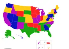 The American Song Contest put artists head-to-head against other representatives in a series of qualifying rounds, leading to the semi-finals and a prime time final in a "March Madness" style.[4] The winning act earns the title of Best Original Song.[5] As initially announced in August 2020, the competition would feature professional musical artists such as solo singers, duos, or groups of up to six members from each of the 50 U.S. states.[4] By May 2021, the format had been expanded to include all five populated U.S. territories and the nation's capital and federal district of Washington, D.C. The participating territories were American Samoa, Guam, Northern Mariana Islands, Puerto Rico, and the U.S. Virgin Islands.[6] Acts could consist of solo artists, duos, bands, or a DJ.[7]
