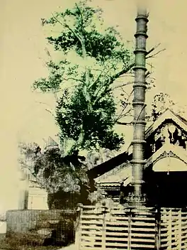 Ammachi Plavu is legendarily connected with the period of Anizham Thirunal Marthanda Varma (1729 -1758).[3] The 'Ettuveetil Pillamar' had challenged Marthanda Varma who ruled Travancore. Ettuveetil Pillamar, who had a decisive influence in the country, had taken steps to end Marthanda Varma's supremacy and rule. Marthanda Varma had often gone into hiding in fear of the Ettuveetil Pillamar and he also regularly changed his residence so as not to be identified by Ettuveetil Pillamar. Marthanda Varma, certain that the enemy was behind him, crossed the Neyyar river and reached the opposite side. When he was trying to hide himself in a safe place, he saw a boy who was grazing cows.[4] The boy hid him in the hollow trunk of a jackfruit tree and thus helped him escape his enemies. Jackfruit tree which helped the king save his life came to be known as "Ammachi Plavu".[5] At present, the hollow trunk is preserved by the Kerala State Department of Archaeology.[6] Later on, Marthanda Varma found that it was none other than Lord Krishna himself who saved him from his enemies, and he constructed a temple to him near the Jackfruit tree, which is now a very popular tourist spot in Southern Kerala.