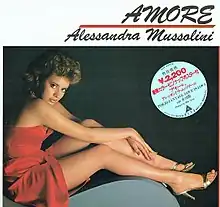 Amore is the first and only album by Alessandra Mussolini. The album was released by the Alfa Records in 1982 in Japan only and was produced by Miki Curtis. On the album, Mussolini sang songs in Italian, English, and Japanese.[1] In 1982, Mussolini and her mother paid a visit to Japan. When asked if her daughter could sing for an advertisement, Mussolini's mother gave a positive answer, even though Mussolini had never sung before. Mussolini recalled that "When I sang in Japan, Cristiano Malgioglio (author of some of her songs on the album) saved me".[2] The album was broadcast in Italy for the first time in a program of Canale 5 in 1996.[3]