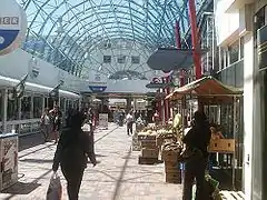 This shopping centre is the largest in Amsterdam. It is located near the Amsterdam Bijlmer ArenA railway station and the ArenA Boulevard (Amsterdam ArenA, Heineken Music Hall, Pathé ArenA), adjacent to the Bijlmermeer neighbourhood, noted for its multicultural population.[1] In the shopping centre there is a location for the Tickets & Service room for the railway station. There are also 225 shops. The public spaces on the Amsterdamse Poort were designed by the Dutch landscape architects Karres en Brands.[2]