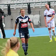 Amy Jackson playing for Melbourne Victory against Perth Glory
