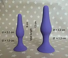 Anal masturbation is an autoerotic practice in which a person masturbates by sexually stimulating their own anus and rectum. Common methods of anal masturbation include manual stimulation of the anal opening and the insertion of an object or objects. Items inserted may be sex toys such as anal beads, butt plugs, dildos, vibrators, or specially designed prostate massagers, or enemas.