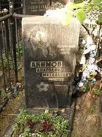 Anatoly Mikhaylovich Akimov (Russian: Анато́лий Миха́йлович Аки́мов; April 6, 1915, Moscow, Russian Empire — August 10, 1984, Moscow, RSFSR, USSR) is a Soviet football goalkeeper. Honored Master of Sports of the USSR (1940), Honored coach of the RSFSR (1963). Player Team Moscow. Head coach of the Democratic Republic of Vietnam (1958-1960).