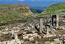 Most of the synagogues unearthed in archaeological excavations in Israel, the West Bank and Gaza Strip and the Golan Heights date from the Roman and Byzantine periods, from the third to seventh centuries. Synagogues from before the destruction of the Second Temple in 70 CE include Gamla, Masada and Herodium.[2] The oldest remains of a synagogue date from the 1st century CE.[3] After the destruction of the Temple in Jerusalem, the local synagogue became its substitute[3] and from Late Antiquity onward, the number of synagogues discovered rise significantly, with over one hundred being unearthed in Palestine alone.[2] Over fifty of these are situated in Galilee and on the Golan Heights.[4]