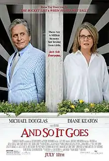And So It Goes is a 2014 American comedy drama film directed by Rob Reiner and written by Mark Andrus. The film, which stars Michael Douglas, Diane Keaton and Sterling Jerins, was released on July 25, 2014. It received mostly negative reviews from critics, and performed modestly at the box office. The film was the second collaboration between Reiner and Douglas, and the first was The American President (1995).