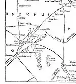 Andkhoy (Dari: اندخوی; Pashto: اندخوی ولسوالۍ) is a city in the northern part of Afghanistan, which has a population of about 47,857 people.[1] They include all the major ethnic groups of the country.[2] The city serves as the capital of Andkhoy District in the Faryab Province. It is around 35 kilometres (22 mi) of driving distance southwest from the Aqina–Imamnazar border crossing between Afghanistan and Turkmenistan.[3] There is also a rail station in the city, which was recently opened for import and export purposes with neighboring Turkmenistan.[4][5][6] The Sheberghan Airfield in neighboring Jowzjan Province is the closest airport to Andkhoy.