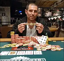 ![]() Cohen after winning Event 1 of the 2009 World Series of Poker | |
