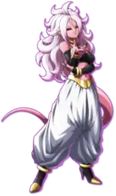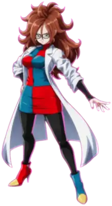 Android 21 (Japanese: 人造人間21号, Hepburn: Jinzōningen Nijūichi-Gō, lit. "Artificial Human #21") is a fictional character in the Dragon Ball media franchise. Created as part of a collaborative process between Arc System Works and Akira Toriyama, Android 21 makes her debut appearance in the 2018 fighting game Dragon Ball FighterZ published by Bandai Namco Entertainment, where she serves as a main villainess. The character has received a very positive reception, and has since appeared in other licensed Dragon Ball video games.