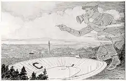 Smith's memorial service was held on January 16 at the gates of California Memorial Stadium, and in accordance with his wishes, his ashes were scattered over the stadium field.[27] In 1927, the Andy Smith Bench on the sideline was dedicated in his honor. Built 100 years ago in 1923, the stadium is still known as "The House that Andy built" because the Wonder Teams' season tickets completely paid for it.[28] Smith was inducted into the College Football Hall of Fame in 1951.[2]