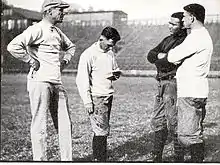 - ↑ Sperber, Murray A. (January 1, 1993). Shake Down the Thunder: The Creation of Notre Dame Football. Indiana University Press. pp. 90, 525 and 530. ISBN 0253215684.