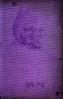 - ↑ Bob Ong, Mga Kaibigan ni Mama Susan.... Archived December 21, 2010, at the Wayback Machine