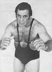 Mosca was brought into wrestling by Montreal promoter Eddie Quinn.[4] He began wrestling in the off-season, and became a full-time wrestler after his retirement from football.[4] He wrestled all across North America, always at or near the top of the card, and almost always as a heel, even in Toronto until the late 1970s, then he became a face, and in the early 1980s, the lead face.[4][3] He also wrestled in Verne Gagne's American Wrestling Association and in Stu Hart's Stampede Wrestling, where he was frequently paired with Superstar Billy Graham in tag team competition.[4] During the mid '70s and '80s, Mosca worked in the Carolinas, facing top stars such as Ric Flair, Wahoo McDaniel, Blackjack Mulligan, and Ivan Koloff.[3]