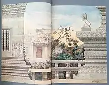 The book opens with a "trailer" (pp. 1–9), that is, a series of full-page watercolors made by the 19th-century French archaeologist and explorer Lucien Fournereau. The body text is divided into six chapters: