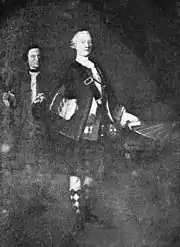 Angus McDonald was born in 1727 in the Scottish Highlands.[1][2][3] He was an immediate family member of a chief of the Clan MacDonell of Glengarry, whose clan seat was Invergarry Castle.[4][5][6] He was probably the son of Angus McDonald, who was a younger son of Alastair Dubh MacDonell, the commander of the Glengarry clan in the Battle of Killiecrankie in 1689 during the early Jacobite risings.[1][3] McDonald was a lineal descendant of a long line of military heroes of the Clan MacDonell of Glengarry and of Somerled, Lord of the Isles.[4][5] McDonald was raised and educated in Glasgow.[1][2][3] During the Jacobite rising of 1745, McDonald fought as a lieutenant under the command of Charles Edward Stuart in the Battle of Culloden, after which he was "attainted of treason".[7][8][9] He fled Scotland, departing from Inverness for the Colony of Virginia in 1746 at the age of 18.[1][4][5]