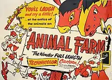 Animal Farm is a 1954 adult animated drama film directed by documentarians John Halas and Joy Batchelor. It was produced by Halas and Batchelor and funded in part by the Central Intelligence Agency (CIA), who also made changes to the original script.[7][8][9] Based on the 1945 novel of the same name by George Orwell, Maurice Denham provides the voice for all the animals in the film.[10]
