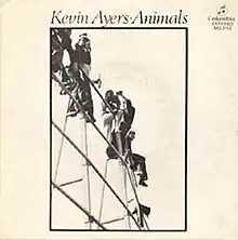 "Animals" was a Kevin Ayers Spanish single release. It was issued on the Columbia imprint of EMI, shortly after his 1980 album, That's What You Get Babe. In 1978 Ayers had relocated to Deià, Spain where he found the more relaxed audiences suited his somewhat delicate sensibilities. 'Animals' uses a Noah's Ark metaphor to take an aggressive swing at the oncoming 1980s consumerism, "Ain't you just like the animals / You do as you're told."