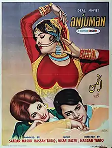 Anjuman is a Pakistani colour film released on 31 July 1970, starring Waheed Murad, Rani, Deeba, Santosh Kumar, Sabiha Khanam and Lehri. The film was released during the hey days of Murad and became a milestone in his career.[1] The film was produced by Safdar Masud under the banner Ideal Movies and directed by Hassan Tariq, a well-known Pakistani film director.[2]