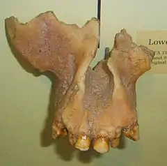 Ankarapithecus is a genus of extinct ape. It was probably frugivorous, and would have weighed about 27 kilograms (60 lb). Its remains were found close to Ankara in central Turkey beginning in the 1950s.[1] It lived during the Late Miocene[2] and was similar to Sivapithecus. Ankarapithecus are different as their specimen are relatively very large than other apes especially their mandibles and palates.