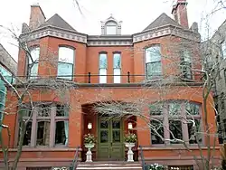The Ann Halsted House is a house located at 440 W. Belden Street in the Lincoln Park community area of Chicago, Illinois. Designed in 1883 and built by 1884, the house is the oldest surviving residence designed by Dankmar Adler and Louis Sullivan. The brick house is designed in the Queen Anne style, which can be seen in its pointed bay windows and the detailed brickwork on the cornices and chimneys on the sides of the house; however, the front of the home reflects a French influence. Sullivan's influence on the home's exterior can mainly be seen in the dormers at the front and back and in the pediments on the sides. The fireplace and railings inside the house are also Queen Anne style, though they too reflect early traces of Sullivan's characteristic design.[2]
