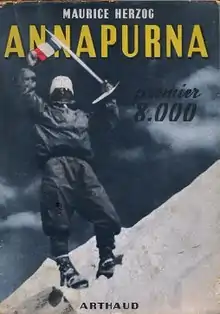 Annapurna: First Conquest of an 8000-meter Peak (1951) is a book by French climber Maurice Herzog, leader of the 1950 French Annapurna expedition, the first expedition in history to summit and return from an 8000+ meter mountain, Annapurna in the Himalayas. It is considered a classic of mountaineering literature and perhaps the most influential climbing book ever written.[1][2][3]