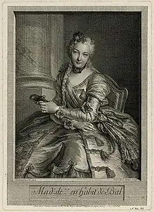Anne d'Arpajon, comtesse de Noailles (Anne Claude Louise d'Arpajon; 4 March 1729 – 27 June 1794[1]) was a French noblewoman and court official. She served as the dame d'honneur of two Queens of France, Marie Leszczyńska and Marie Antoinette. She was called "Madame Etiquette" by Marie Antoinette for her insistence that the minutiae of court etiquette could never be altered or disregarded.[2]