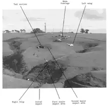 Flight 703 flew into rising terrain, striking high ground twice before the final impact and breaking up as it slid along the ground. The fuselage came to rest 235 m (771 ft) from the site of initial impact. The right main landing gear that the pilots were trying to extend was found still in the retracted position.[3]