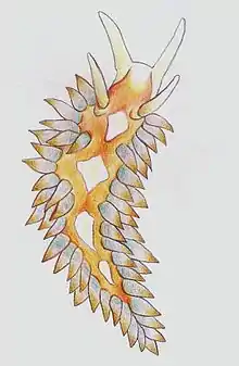 - ↑ Miller, M.C. (2001). "Aeolid nudibranchs (Gastropoda: Opisthobranchia) of the family Aeolidiidae from New Zealand waters". Journal of Natural History. 35 (5): 629–662 [633–634]. doi:10.1080/00222930152023081. S2CID 86619551.