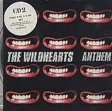 Anthem is a single released in August 1997 by The Wildhearts, on the Mushroom Records Label. It was the first Wildhearts single to be released on multiple formats (Formats: CD1 (MUSH6CD), CD2 (MUSH6CDX), 7" Vinyl (MUSH6S)) with different b-sides on each format, which caused some uproar at the time from longtime fans of the band. It reached number 21 on the UK chart.[1]