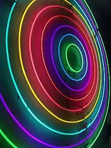 Neons was a series of colorful rings of neon lights placed in ascending order of diameter size.