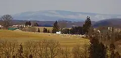 A small slice of Paleozoic rocks, mostly carbonates, exists in Buckingham Township. These rocks lie north of the Furlong fault which is an offshoot of the larger Chalfont fault.[11] Buckingham Mountain rises south of the valley and comprises quartzite. The other ridge is less prominent and is underlain by the conglomerates of the Stockton Formation. Karst is a localized problem in this area.