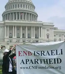 Rafael Medoff, founding director of The David S. Wyman Institute for Holocaust Studies, labels the Council for the National Interest (CNI) as an organization that is part of the "anti-Israel lobby." CNI was founded following former Congressman Paul Findley's 1982 defeat by "pro Israel political action committee (PAC) money."[8] CNI's website states its objective as "seeking to encourage and promote a U.S. foreign policy in the Middle East that is consistent with American values, protects our national interests, and contributes to a just solution of the Arab-Israeli conflict. It is CNI’s goal to restore a political environment in America in which voters and their elected officials are free from the undue influence and pressure of foreign countries and their partisans."[8][9]