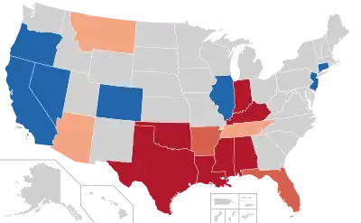 Anti-LGBT curriculum laws are laws approved by various U.S. states that prohibit or limit the mention or discussion of homosexuality and transgender identity in public schools, especially in younger grades.[1] In theory, these laws mainly apply to sex ed courses, but they can also be applied to other parts of the school curriculum as well as to extracurricular activities such as sports and organizations such as gay–straight alliances.[2] In July 2022, a wave of anti-LGBT curriculum resurgence saw ten such laws beginning to take effect in six different states. Some states enacting these new laws appear to have mirrored similar laws from other states.[3]