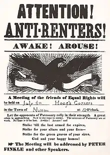![]() Poster announcing an Anti-Rent meeting in the town of Nassau, New York | |||||||