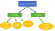 - Late stage – occurs after prolonged (months-years) treatment, symptoms persist even after dose is decreased[13]