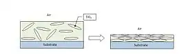 One of the newer additions to this ever growing market are nanoparticle based coatings. Silica particles are formed using the sol-gel method. The resulting silica particles have both reactive (Si-OH) and nonreactive (Si=O) groups on the surface. The reactive groups provide locations for further chemical processing, which allow you to change the surface properties of the nanoparticles. For anti-graffiti coatings, hydrophobic and oleophobic (oil-fearing) ligands are grafted onto the silica nanoparticles. Hydrophobic ligands are non-polar molecules such as hydrocarbon chains. Oleophobic ligands consist of polar molecules. Normally these two different types of molecules would phase separate in solution, for the same reason that water and oil do not mix. By chemically grafting the ligands onto the silica particles, this effect is counteracted. The effect is a coating that shows an equal dislike for both water-based and oil-based paints.[5]